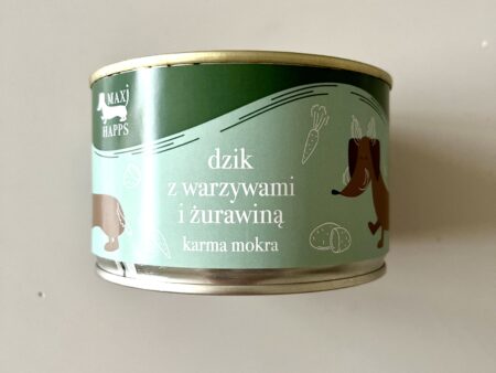 Potrzebujesz karmy mokrej, która idealnie spełnia proporcje mięsa mięśniowego do podrobów w diecie BARF? Chcesz podać psu dobrą, mięsną karmę na wyjazd albo po prostu nie masz czasu czy ochoty przygotować dziś posiłku BARF dla psa? Karma mokra Maxi Happs to jak gotowany BARF, bez dodatku warzyw i suplementów. Dlatego mięsną część masz już z głowy, możesz teraz dodać warzywo np. dynię, suplement wapnia, drożdże, olej omega 3 i gotowe.